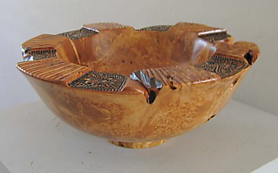 Turned, Carved & burned Bigleaf Maple Burl 6 1/4" high 15" diameter